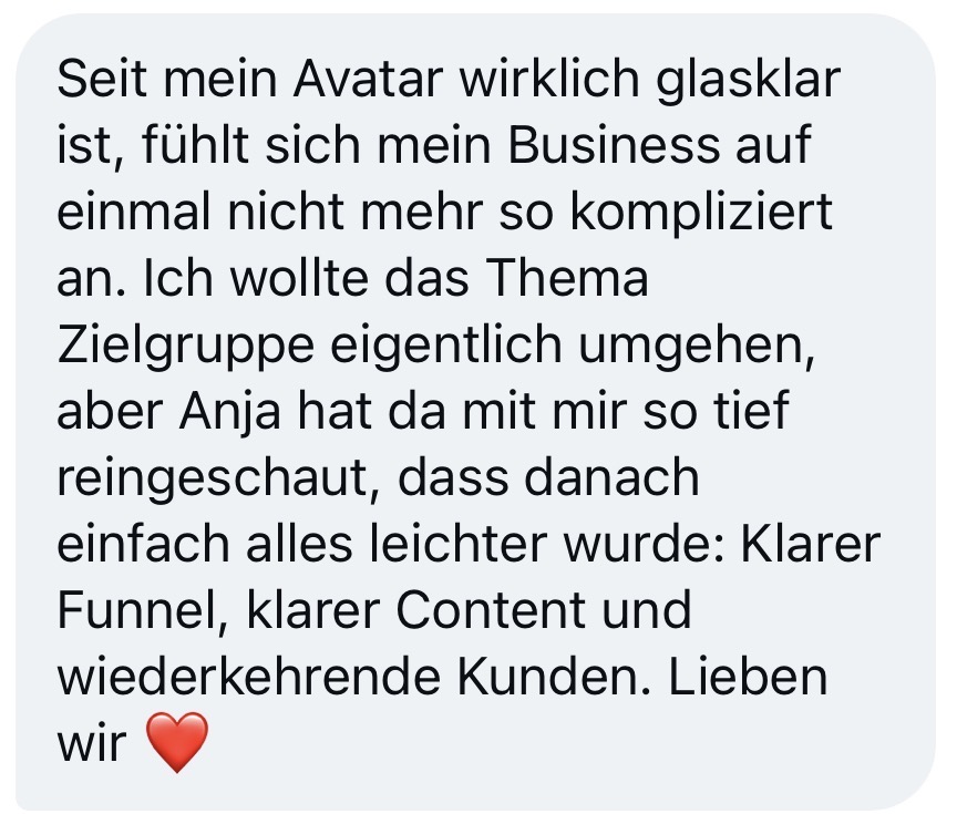 Du weißt danach, wen du ansprichst und wie du deine Persönlichkeit so zeigst, dass deine Wunschkund*innen direkt bei dir buchen wollen. Du weißt, welche Worte verkaufen. Nicht lauter. Sondern klarer.